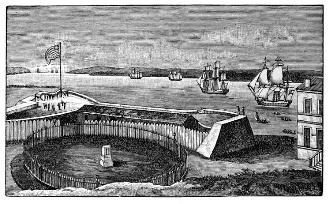 Battle of Fort Moultrie, June 28, 1776At last Clinton landed three thousand men on a naked sand-bank, divided from Sullivan’s Island by a short space of shallow sea, which he thought could be forded at low tide. At the proper time Sir Peter Parker was to open a lively fire from the fleet, which it was expected would knock down the fort in a few minutes, while Clinton, fording the shoals, would drive out the Americans at the point of the bayonet. The shoals, however, turned out to be seven feet deep at low water, and the task of the infantry was reduced to a desperate conflict with the swarms of mosquitoes, which nearly drove them frantic. The battle thus became a mere artillery duel between the fort and the fleet. The British fire was rapid and furious, but ineffective. Most of the shot passed harmlessly over the low fortress, and those which struck did no harm to its elastic structure. The American fire was very slow, and few shots were wasted. The cable of Parker’s flagship was cut by a well-aimed ball, and the ship, swinging around, received a raking fire which swept her deck with terrible slaughter. After the fight had lasted ten hours, the British retreated out of range. The palmetto fort had suffered no serious injury, and only one gun had been silenced. The American loss in killed and wounded was thirty-seven. On the other hand, Sir Peter’s flagship had lost her mainmast and mizzen-mast, and had some twenty shots in her hull, so that she was little better than a wreck. The British loss in killed and wounded was two hundred and five. Of their ten sail, only one frigate remained seaworthy at the close of the action. After waiting three weeks to refit, the whole expedition sailed away for New York to coöperate with the Howes. Charleston was saved, and for more than two years the southern states were freed from the invader. In commemoration of this brilliant victory, and of the novel stronghold which had so roused the mirth of the European soldier of fortune, the outpost on Sullivan’s Island has ever since been known by the name of Fort Moultrie.