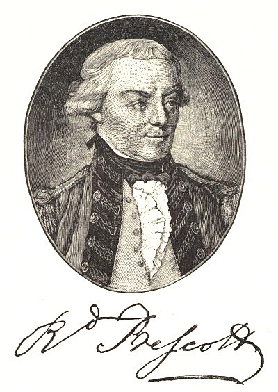 After their expulsion from Boston in the first year of the war, the British never regained their foothold upon the mainland of New England. But in December, 1776, the island which gives its name to the state of Rhode Island had been seized by Lord Percy, and the enemy had occupied it ever since. From its commanding position at the entrance to the Sound, it assisted them in threatening the Connecticut coast; and, on the other hand, should occasion require, it might even enable them to threaten Boston with an overland attack. After Lord Percy’s departure for England in the spring of 1777, the command devolved upon Major-general Richard Prescott, an unmitigated brute. Under his rule no citizen of Newport was safe in his own house. He not only arrested people and threw them into jail without assigning any reason, but he encouraged his soldiers in plundering houses and offering gross insults to ladies, as well as in cutting down shade-trees and wantonly defacing the beautiful lawns. A great loud-voiced, irascible fellow, swelling with the sense of his own importance, if he chanced to meet with a Quaker who failed to take off his hat, he would seize him by the collar and knock his head against the wall, or strike him over the shoulders with the big gnarled stick which he usually carried. One night in July, as this petty tyrant was sleeping at a country house about five miles from Newport, a party of soldiers rowed over from the mainland in boats, under the guns of three British frigates, and, taking the general out of bed, carried him off in his night-gown. He was sent to Washington’s headquarters on the Hudson. As he passed through the village of Lebanon, in Connecticut, he stopped to dine at an old inn kept by one Captain Alden. He was politely received, and in the course of the meal Mrs. Alden set upon the table a dish of succotash, whereupon Prescott, not knowing the delicious dish, roared, “What do you mean by offering me this hog’s food?” and threw it all upon the floor.