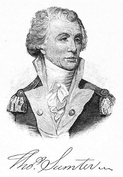 Second to Marion alone in this wild warfare was Thomas Sumter, a tall and powerful man, stern in countenance and haughty in demeanour. Born in Virginia in 1734, he was present at Braddock’s defeat in 1755, and after prolonged military service on the frontier found his way to South Carolina before the beginning of the Revolutionary War. He lived nearly a hundred years; sat in the Senate of the United States during the War of 1812, served as minister to Brazil, and witnessed the nullification acts of his adopted state under the stormy presidency of Jackson. During the summer of 1780, he kept up so brisk a guerrilla warfare in the upland regions north of Ninety-Six that Cornwallis called him “the greatest plague in the country.” “But for Sumter and Marion,” said the British commander, “South Carolina would be at peace.” The first advantage of any sort gained over the enemy since Clinton’s landing was the destruction of a company of dragoons by Sumter, on the 12th of July. Three weeks later, he made a desperate attack on the British at Rocky Mount, but was repulsed.