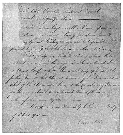 Early on a dark morning of the fourth week in October, an honest old German, slowly pacing the streets of Philadelphia on his night watch, began shouting, “Basht dree o’glock, und Gornvallis ish dakendt!” and light sleepers sprang out of bed and threw up their windows. Washington’s courier laid the dispatches before Congress in the forenoon, and after dinner a service of prayer and thanksgiving was held in the Lutheran Church. At New Haven and Cambridge the students sang triumphal hymns, and every village green in the country was ablaze with bonfires. The Duke de Lauzun sailed for France in a swift ship, and on the 27th of November all the houses in Paris were illuminated, and the aisles of Notre Dame resounded with the Te Deum. At noon of November 25th, the news was brought to Lord George Germain, at his house in Pall Mall. Getting into a cab, he drove hastily to the Lord Chancellor’s house in Great Russell Street, Bloomsbury, and took him in; and then they drove to Lord North’s office in Downing Street. At the staggering news, all the Prime Minister’s wonted gayety forsook him. He walked wildly up and down the room, throwing his arms about and crying, “O God! it is all over! it is all over! it is all over!” A dispatch was sent to the king at Kew, and when Lord George received the answer that evening, at dinner, he observed that his Majesty wrote calmly, but had forgotten to date his letter, – a thing which had never happened before.