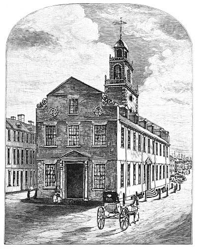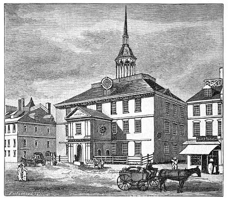 On the 22d of February, 1770, an informer named Richardson, being pelted by a party of schoolboys, withdrew into his house, opened a window, and fired at random into the crowd, killing one little boy and severely wounding another. He was found guilty of murder, but was pardoned. At last, on the 2d of March, an angry quarrel occurred between a party of soldiers and some of the workmen at a ropewalk, and for two or three days there was considerable excitement in the town, and people talked together, standing about the streets in groups; but Hutchinson did not even take the precaution of ordering the soldiers to be kept within their barracks, for he did not believe that the people intended a riot, nor that the troops would dare to fire on the citizens without express permission from himself. On the evening of March 5th, at about eight o’clock, a large crowd collected near the barracks, on Brattle Street, and from bandying abusive epithets with the soldiers began pelting them with snow-balls and striking at them with sticks, while the soldiers now and then dealt blows with their muskets.