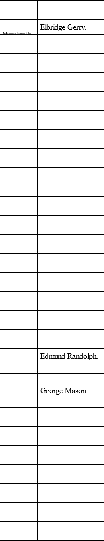 The names of those who for various reasons were absent when the Constitution was signed are given in italics; the names of those who were present, but refused to sign, are given in small capitals.