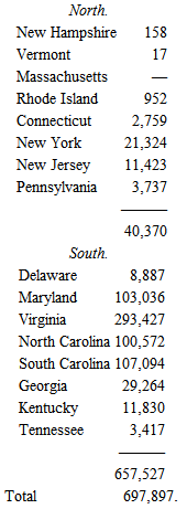 The slave-population of the United States, according to the census of 1700, was thus distributed among the states: —