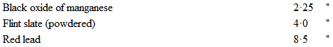 Some time ago, a person engaged in the manufacture of the enamel plates used for railway lamps, on which are written the names of the stations, called upon me, and told me, that the enamel which he employed had become dark, spotty, and in many cases had peeled off from the glass. The reason of this is identical with that which occurs in stained glass windows, viz. that the fluxes that he used were not suitable for the purpose, considering that they had to withstand the action of the weather. From an analysis made of these fluxes (not of those last alluded to, but of those which have been employed in stained glass windows), it appears that large quantities of borax have been introduced; and, wherever this is the case, no reliance whatever can be placed on the permanency of pictures painted with such fluxes. I have appended a few receipts for fluxes, which can be used with safety by any glass painter who will take the trouble to try them. But I must strongly advise that all those who are connected with the making of fluxes in any glass painting establishment, should master sufficient chemical knowledge to enable them to ascertain the behaviour of the materials, with respect to one another, as well as of the nature of the glass upon which they are employed; for very much indeed depends upon a correct knowledge of the character of the glass as to whether it be hard or soft, what it contains, and of the temperature at which the glass becomes sufficiently soft to form a firm and enduring union with the colours fluxed upon it.