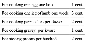 7. The fiyer must not be aloud to go out without some boddy with it, be cause fiyers are dangerous and might set the house on fiyer. Any cook which lets the house burn down through voilating this rule will have the value of the house subtracted from her next month's wages, with interest at forety persent from the date of the fiyer.