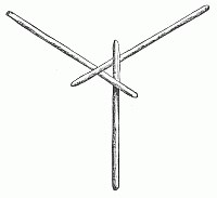 You may some time have occasion to make a shelter on a ledge or floor where you cannot drive a pin or nail. If you can get rails, poles, joists, or boards, you can make a frame in some one of the ways figured here, and throw your tents over it.