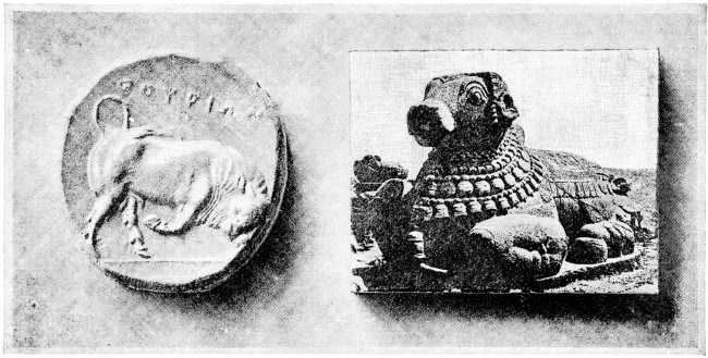 203. Here, on the right, in Plate XX., is an Indian bull, colossal, and elaborately carved, which you may take as a sufficient type of the bad art of all the earth. False in form, dead in heart, and loaded with wealth, externally. We will not ask the date of this; it may rest in the eternal obscurity of evil art, everywhere, and forever. Now, beside this colossal bull, here is a bit of Dædalus-work, enlarged from a coin not bigger than a shilling: look at the two together, and you ought to know, henceforward, what Greek art means, to the end of your days.