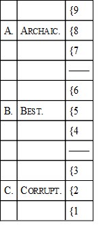 I number the nine centuries before Christ thus, upwards, and divide them into three groups of three each.