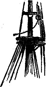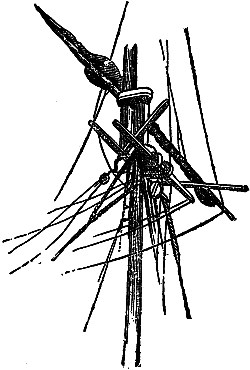 Take a single instance. I do not know any work in which, on the whole, there is a more unaffected love of ships for their own sake, and a fresher feeling of sea breeze always blowing, than Stanfield's "Coast Scenery." Now, let the reader take up that book, and look through all the plates of it at the way in which the most important parts of a ship's skeleton are drawn, those most wonderful junctions of mast with mast, corresponding to the knee or hip in the human frame, technically known as "Tops." Under its very simplest form, in one of those poor collier brigs, which I have above endeavored to recommend to the readers affection, the junction of the top-gallant-mast with the topmast, when the sail is reefed, will present itself under no less complex and mysterious form than this in Fig. 1, a horned knot of seven separate pieces of timber, irrespective of the two masts and the yard; the whole balanced and involved in an apparently inextricable web of chain and rope, consisting of at least sixteen ropes about the top-gallant-mast, and some twenty-five crossing each other in every imaginable degree of slackness and slope about the topmast. Two-thirds of these ropes are omitted in the cut, because I could not draw them without taking more time and pains than the point to be illustrated was worth; the thing, as it is, being drawn quite well enough to give some idea of the facts of it. Well, take up Stanfield's "Coast Scenery," and look through it in search of tops, and you will invariably find them represented as in Fig. 2, or even with fewer lines; the example Fig. 2 being one of the tops of the frigate running into Portsmouth harbor, magnified to about twice its size in the plate.