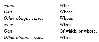 Pronouns relative are, who, which, what, whether, whosoever, whatsoever.