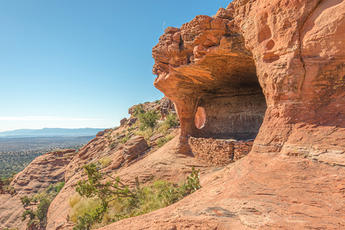 Lage: 20 km nordwestlich von Sedona, AZ. GPS: Trailhead 34.930971, -111.972063, Höhle 34.930964, -111.967167.