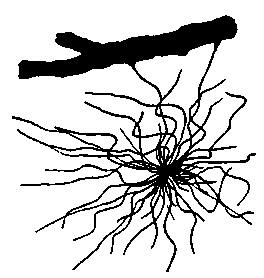 FIG. 16.—NEUROGLIA CELL FROM THE SUBCORTICAL LAYER OF THE CEREBRUM FROM WHICH TWO PROCESSES GO TO A BLOOD VESSEL (Obersteiner).