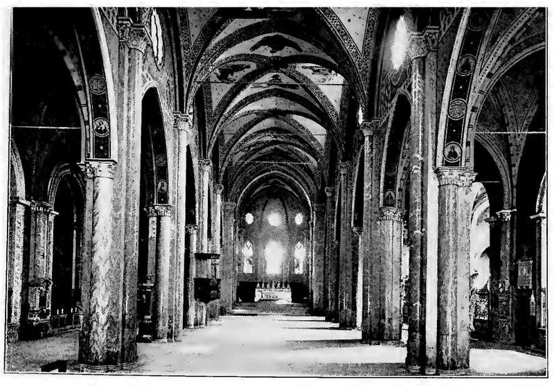 We have already pointed out in discussing the Cathedrals that one of the most characteristic features of the Gothic architecture was the marvelous ease with which it lent itself to the expression of national peculiarities. Norman Gothic is something quite distinct from German Gothic which arose in almost contiguous provinces, but so it is also from English Gothic; these two were very closely related in origin and undoubtedly the English Cathedrals owe much to the Norman influence so prevalent in England at the end of the Twelfth Century, and the beginning of the Thirteenth Century. Italian Gothic has the principal characteristic peculiarities of the architectural style which passes under the name developed to a remarkable degree, and yet its finished product is far distant from any of the three other national forms that have been mentioned, yet is not lacking in a similar interest. Spanish Gothic has an identity of its own that has always had a special appeal for the traveler. Any one who has ever visited the shores of the Baltic sea and has seen what was accomplished in such places as Stralsund, Greifswald, Lübeck, and others of the old Hansa towns, will appreciate still more the power of Gothic to lend itself to the feelings of the people and to the materials that they had at hand. Here in the distant North they were far away from any sources of the stone that would ordinarily be deemed absolutely necessary for Gothic construction. How effectively they used brick for ecclesiastical edifices can only be realized by those who have seen the remains of the Gothic monuments of this portion of Europe.