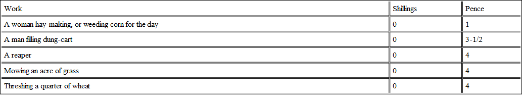 An Act of Edward III. fixes the wages, without food, as follows. There are many other things mentioned, but the following will be enough for our purpose:
