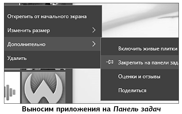 Повторяем пункты 1 и 2, а затем выбираем действие Дополнительно и далее – Закрепить на панели задач.