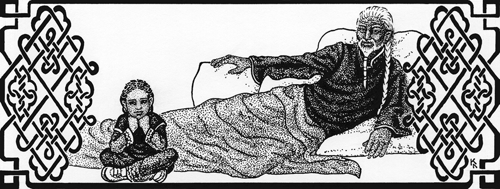 Мы с Оривой наконец-то покидаем импровизированную операционную, оставив пациента спать, пока обезболивающее работает. Внизу на кухне Азамат разделывает какую-то гигантскую птицу, а Алтонгирел, нависнув над столом, вещает что-то о нравственности и приличиях, как обычно. С другой стороны стола сидит маленькая девочка, такая маленькая, что я вижу только её макушку с хитрой причёской. Я устало падаю в кресло и без особого энтузиазма прислушиваюсь, что там опять не нравится зануде-духовнику.