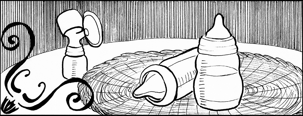 Однако ребёнок что-то оголодал на совесть: выпил всё, что было во мне, и потребовал ещё. Я, правда, сегодня почти ничего не ела, только печенье утром. Видимо, молока было мало. Приходится достать из морозилки и разогреть пакет со сцеженным молоком. Оно не такое вкусное, да и вообще скорее всего кто-то просто выпендривался: пару глотков сделал из бутылочки и всё, больше не хочет. Вот переводчик продукта маленький! И уже хнычет, изворачивается, пора спать.