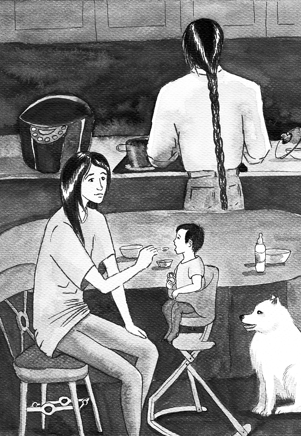 Кир замолкает неожиданно для самого себя, зато я замечаю, что Азамат больше не обсуждает устройство крыши, а наблюдает за развернувшейся сценой, одной рукой покачивая Алэка.