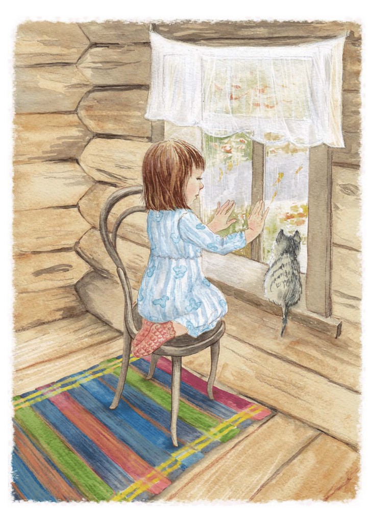 Затем папа продолжил выкапывать картошку, а Маруся решила немного посидеть на мешках, лежавших рядом с костром. Рядом с девочкой прилёг Мурзик. Маруся гладила его по спинке и наблюдала за осинками, которые росли за изгородью. Ей казалось, что они похожи на свечки, которые вместо огоньков разбрасывают в разные стороны свои красные листочки. Убаюканная этим шорохом и мурлыканьем котёнка, Маруся уснула.