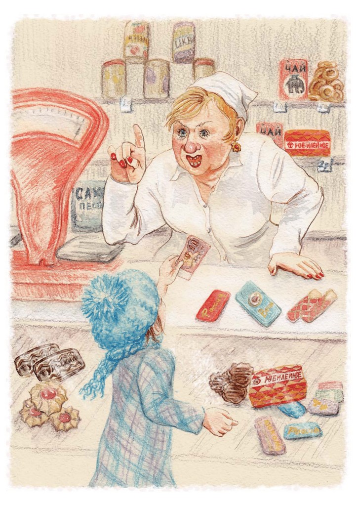 Надо сказать, что мама не особо баловала девочек сладостями. И только папа, получив на работе зарплату, заходил в поселковый магазин и всегда покупал дочкам немного конфет и пряников. До папиной зарплаты было ещё очень далеко, а Маруся теперь только и думала о шоколадке. Хотя мама строго-настрого запретила ей одной ходить в магазин, Маруся решила её ослушаться. «Ведь ничего нет плохого в том, что я только одним глазком посмотрю, какие там бывают шоколадки», – думала она.