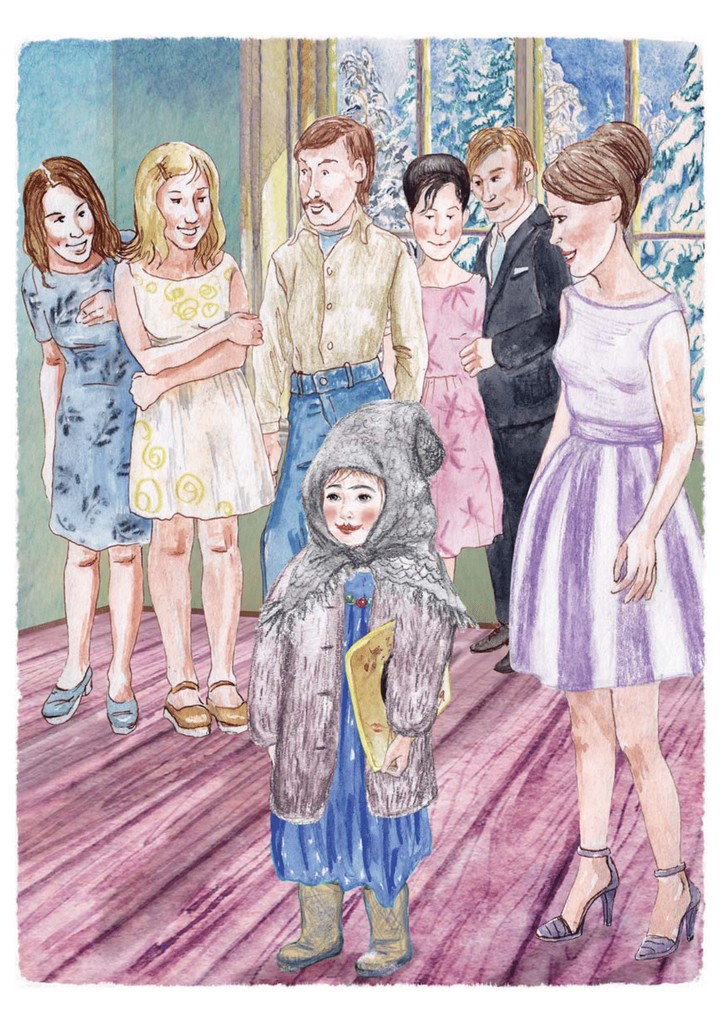 Взбираться по высоким ступенькам ей постоянно что-то мешало: то пластинка, которую она держала под шубой, то валенок, выползающий из-под косынки, то платье. Оно было очень длинным постоянно цеплялось за валенки, так что приходилось придерживать подол. Уже поднявшись, Маруся вдруг поняла, что внутрь зайти сама не сможет. Дверь была слишком большая и тяжёлая. Она всегда кого-то просила открыть её. Но теперь эту дверь предстояло отворить без помощи взрослых.