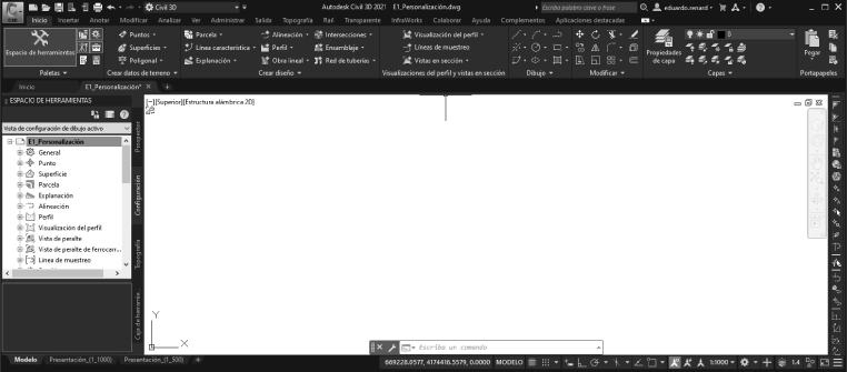 Figura 1.1 Interfaz principal de Autodesk Civil 3D.