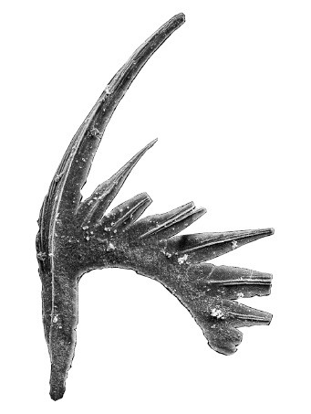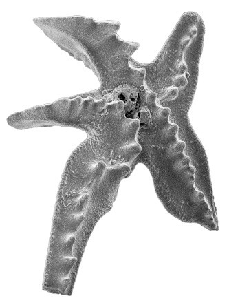 Рис. 2.1. Платформенный конодонтовый элемент эоплакогнат (Eoplacognathus lindstroemi), ширина 0,95 мм; среднеордовикская эпоха (466 млн лет); р. Волхов, Ленинградская обл. (Т. Ю. Толмачева, ВСЕГЕИ)