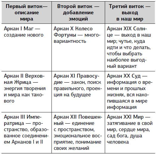 Второй способ – через движение снизу вверх, от Аркана XXII к Аркану I. Этот способ легче, так как вы заземляетесь и осваиваете потенциал Арканов по нарастающей, от нижних к верхним. Если вы не проработали какой-то из нижних Арканов в полную меру, работа на верхних уровнях обязательно выявит это. Поэтому не стоит пренебрежительно относиться к проработке нижних Арканов, стремясь как можно скорее овладеть высшими.