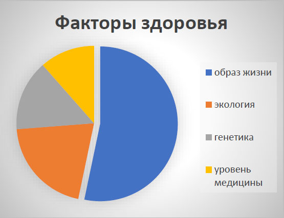 В современном мире изменилось содержание понятия «здоровье» и появились высокие стандарты, которым надо соответствовать. Здоровье на 43–55 % (по данным разных авторов) зависит от образа жизни человека.