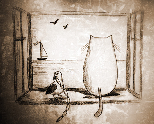 – Мне хозяин тебя поймать вроде как велел. Давай ты прикинешься мёртвой, я тебя покажу ему, а потом отпущу. У него творческий кризис, понимаешь?