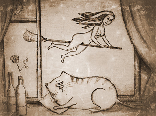 Однажды Художник прибежал домой встревоженный, пробормотал: «Опять я не за ту «ню» взялся, сейчас ведь бить придут!», собрал быстро вещи, взял Кота и умчался на вокзал за билетом.