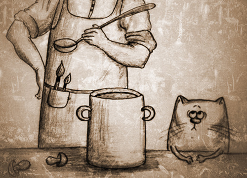 После того супа Художник за одну ночь написал 8 картин, а Музыкант сборник песен и одну лирическую сонату. Хорошо, что Кот суп не ел. А то не дай бог ещё и у него тяга к творчеству открылась бы.