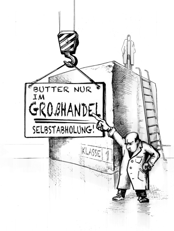 …1994 lernte ich eine Geschäftsfrau kennen, die ein Unternehmen zur Verpackung von Butter gegründet hatte. Während ihrer Arbeit in einer Fabrik, die Butter in riesengroßen Stücken herstellte, wurde sie Zeugin eines abrupten und unangenehmen Gesprächs zwischen einem ihrer Vorgesetzten und einem Kunden. Der Kunde wollte nur ein kleineres Stück Butter kaufen als angeboten und war sogar bereit, den Preis für das große Stück zu zahlen, aber der Vorgesetzte lehnte dieses Ansinnen strikt ab mit der Begründung, es gäbe in der Fabrik keine Möglichkeit, das große Stück zu teilen. Also rief die künftige Geschäftsfrau ihren Mann an und gemeinsam mit dem Kunden schnitten sie von Hand ein großes Stück Butter, das bereits von dem Käufer erworben worden war, in zwei Teile. Am nächsten Tag entstand in der Stadt N ein Butterverpackungsunternehmen. Ein auf den ersten Blick einfaches Geschäft, das Verpacken von Butter, begann sich damals fast schneller zu entwickeln als das Internet.