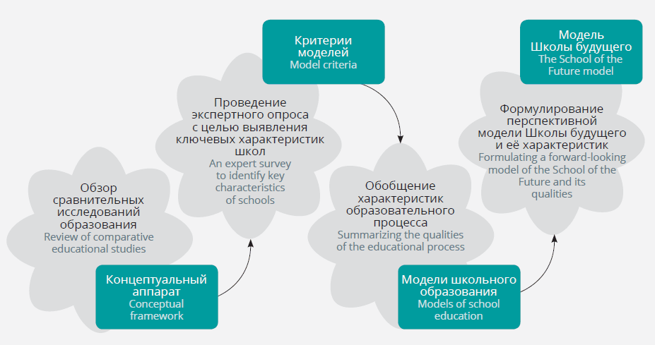 A desk review of publications was conducted to develop a conceptual framework within which the school education could be described. In the preparatory part of the study, the authors consider sources of information about modern approaches to the organization of school education in Russia and abroad. These included both theoretical sources describing various concepts, which were used later to formulate the questionnaire guide, and narratives illustrating important case studies of educational models.