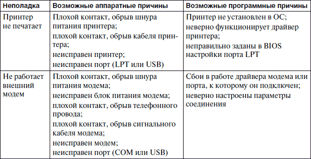 Очень важно вовремя разобраться в типе неполадки. Если ошибка аппаратная, надо покупать устройство взамен вышедшего из строя. «Лечение» программных сбоев обходится гораздо дешевле – достаточно определить и наладить работу виновной программы. В крайнем случае придется переустанавливать все программное обеспечение. Это займет время, но не потребует денег. Программно-аппаратные беды могут привести к неожиданному результату. Часто удается их победить, изменив настройки. Иногда приходится немного «шаманить» с железом. Помните, я рассказывал, что иногда USB-принтер начинает работать после переключения в другой разъем на корпусе? Это типичное «шаманство». В отдельных случаях программно-аппаратные проблемы можно решить только заменой комплектующих.