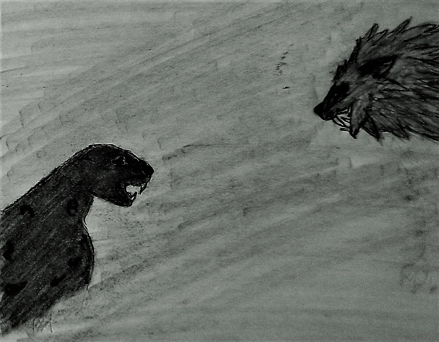 Она легла на живот, тяжело дыша. Она стала Леопардом и стояла, подтягивая левую лапу, так как не могла на неё наступить. Леопард хлестала себя хвостом, скалила зубы, шерсть стояла дыбом, она отходила назад. Пока не почувствовала, что идти не куда, сзади стена. Оборотень с самодовольным оскалом шёл на неё.