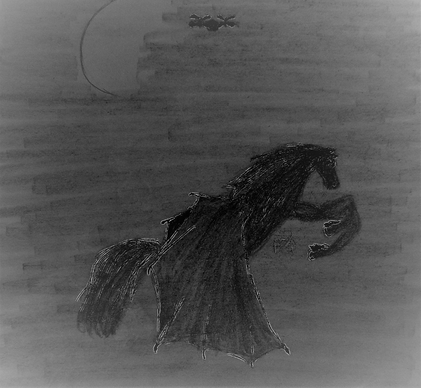 Но тут у коня выросли два крыла, только в отличии от крыльев, прилетевших лошадей, они были как у летучей мыши, а не как у птиц.