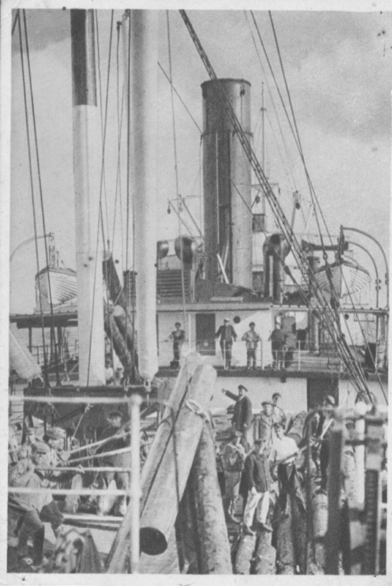 Сейчас в пути встретились с Белухой – они идут в море. Обе команды высыпали на палубу, машут шапками, кричат прощальные приветствия, салютуют флагами. На иностранных пароходах тоже высыпал народ на палубы, смотреть это не совсем обычное прощание – прощание брата и сестры перед будущими невзгодами, и которые встретятся не скоро – только зимой в Мурманске. Наконец, Белуха дает последний гудок и скрывается за поворотом реки, от нее остается лишь блестящий след на шероховатой поверхности реки.