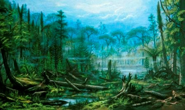 Главным завоеванием живых организмов в палеозое был выход на сушу в силурийском периоде. Произошло появление первых позвоночных – рыб в ордовикском периоде и первых наземных растений в девонском периоде. Каменноугольный период характеризуется бурным расцветом растительности на суше, которую составляли гигантские хвощи, плауны, папоротники. В этом периоде образовались практически все современные залежи угля, нефти и газа.