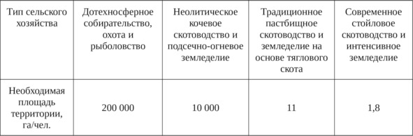 Таблица 2.7. Историческое изменение площади сельскохозяйственной территории, необходимой для питания одного человека26