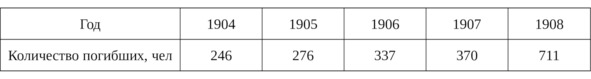 Таблица 2.9. Число случаев смертельного травматизма рабочих по данным фабричной инспекции России29