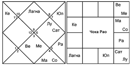 2. Гороскоп 2 принадлежит члену Индийского Парламента Чоке Рао. Его управитель 9-го также попадает в 8-й дом. Его также в детстве усыновили, и вновь на это решение он сам повлиять не мог – это была его судьба.