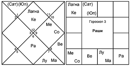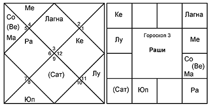 3. Гороскоп 3 принадлежит мультимиллионеру. В его доме управители 8-го и 9-го обмениваются домами. Он – Парси, последователь религии зороастризма, но принял посвящение в индуистскую садхану от Гуру со священной горы Гирнар в Гуджарате.
