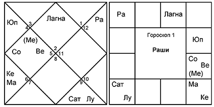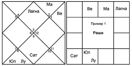 В астрологии можно очень легко проследить Карма-пхалу с помощью системы Махадаш. Для примера рассмотрим гороскоп 1.