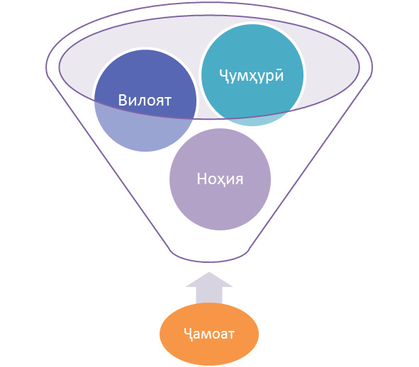 Дар асл фаъолияти идоракуниро агар аз поён ба боло инъикос намоем, пас он маҳз аз ҳамин мақомот манша мегирад (ниг. ба расми поён).