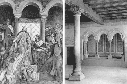 Справа: Здание ландграфа. Зал певцов. Архитектурное оформление XIX в. (Беседка для певцов)