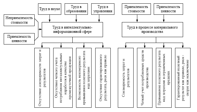 Существенные различия труда в интеллектуально-информационной сфере (науке, образовании, управлении) и труда в процессе материального производства
