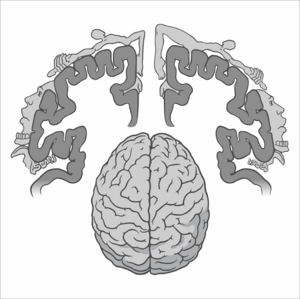 Наш головной мозг формирует так называемую карту тела – это проекция регионов тела, частей тела на коре головного мозга. Размер представительства в коре головного мозга у каждых регионов разный. Если человек не пользуется тем или иным регионом тела, то его представительство в коре будет незначительным, так как этот регион не нужно контролировать так тщательно, как более эксплуатируемые. Например, у дегустаторов достаточно большую площадь в коре занимает вкусовой орган восприятия – язык, у музыканта – орган восприятия звука, а вот у балерины – опорно-двигательный аппарат, в частности стопа (рис. 4).
