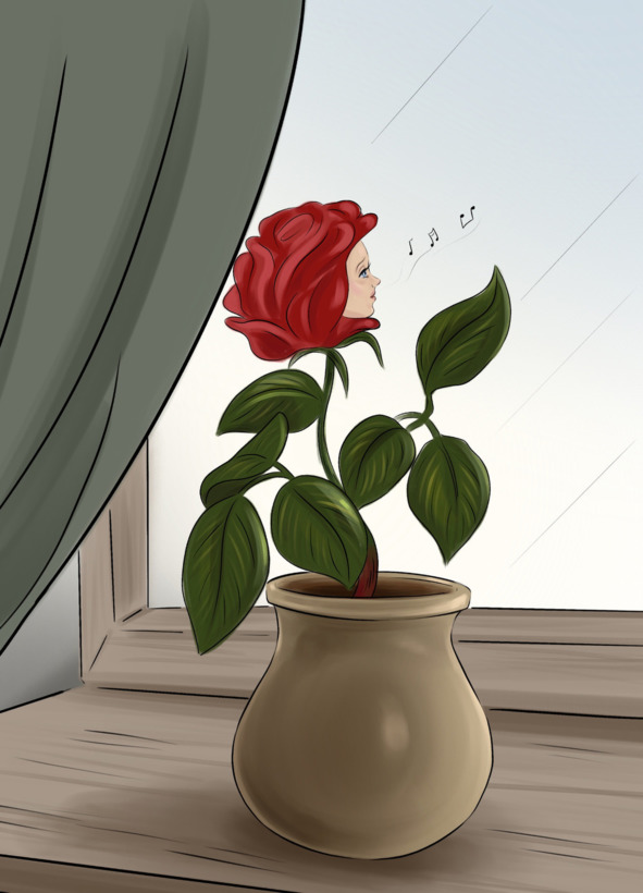 Действительно. Роза, скромно стоявшая на подоконнике, прижалась к стеклу и напевала слова неизвестной песни. Она грустно смотрела куда-то вдаль и хлопала длинными ресницами.