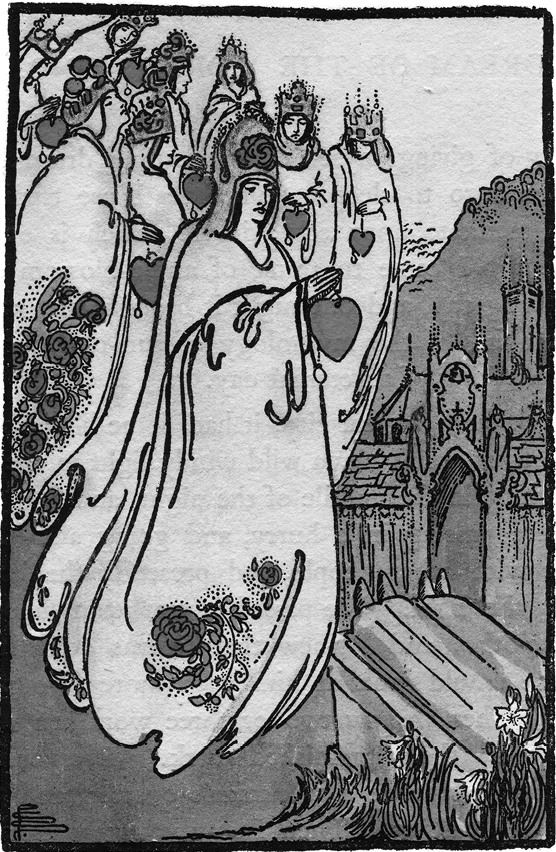 В 2011 году мы с Маркусом издали книгу «Пребывая в святилище», содержащую рисунки и историю «второго Таро» А. Э. Уэйта, «Великого символа путей», реализованного художником Джоном Триником в 1917–1923 годах[2]. Я обнаружила эти рисунки практически случайно. Маркус попросил меня найти фотографию Уилфреда Пиппета, церковного художника и иллюстратора, чье творчество, как он предчувствовал, могло быть как-то связано с Уэйтом.